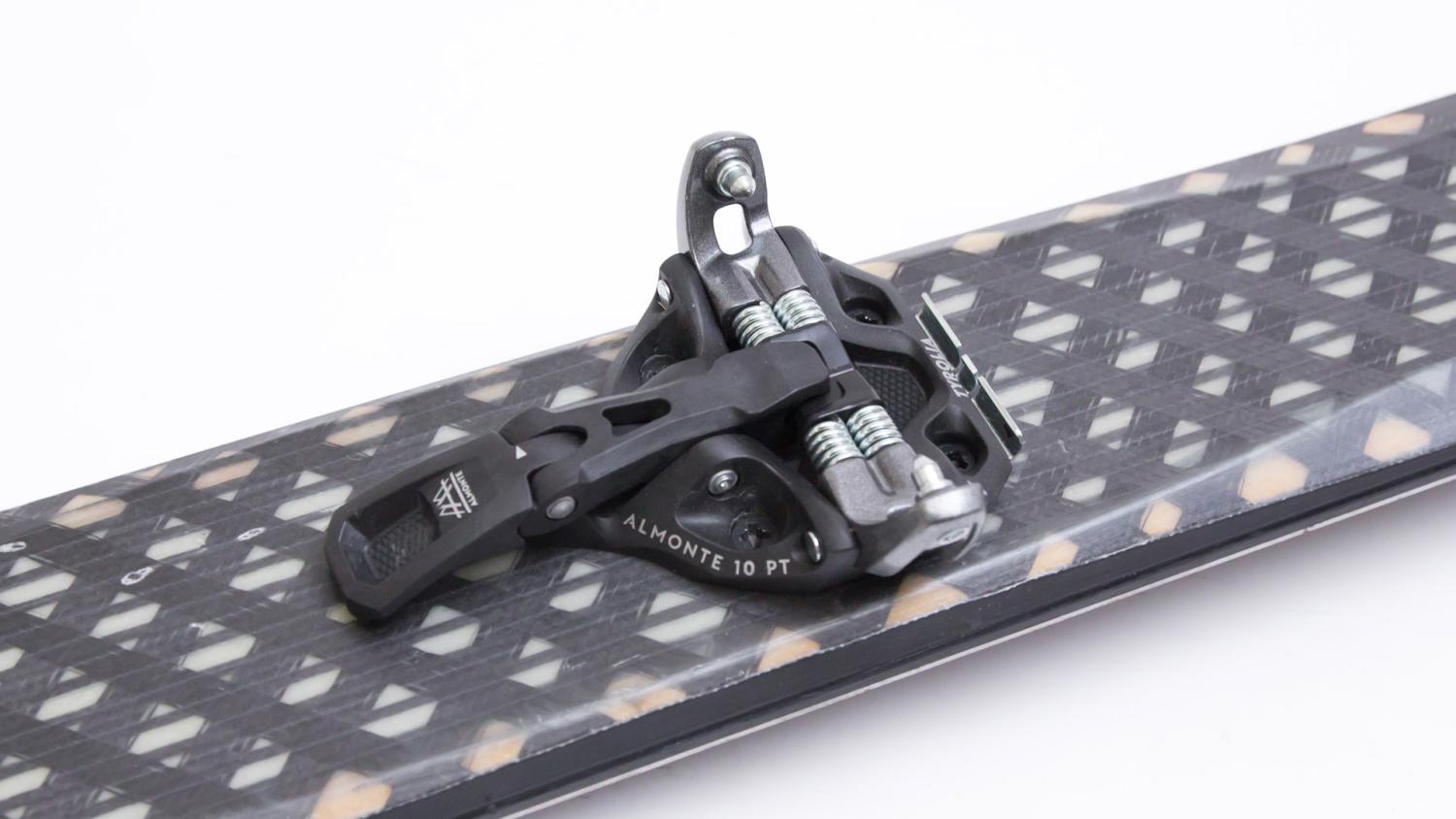 The Almonte Pin Touring ski binding was designed so that every surface and every bar makes statical and mechanical sense, avoiding any additional weight. The recesses where the screws are located clearly reflect Tyrolia's brand DNA.